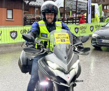 Regardez-bien lors de nos courses, si vous cherchez Stephan il sera sur la Moto Sécurité n°1, en tête de course pour gérer la sécurité des cyclistes et coordonner l’ensemble des motards présents sur le circuit. C’est grâce à lui que nous pouvons transporter tout notre matériel à travers la France en une seule fois avec son beau semi-remorque aux couleurs du GFNY.