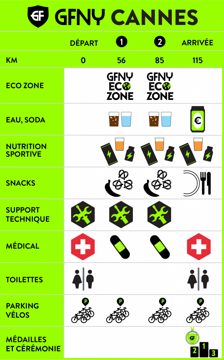 LE LONG PARCOURS EST UNE COMPETITION: Seuls ceux qui finissent le long parcours sont éligibles pour le classement par catégorie, la remise des prix et le podium. Si vous voulez courir et être classé dans votre catégorie, vous devez compléter le long parcours. Les 10% des finalistes dans chaque groupe d'âge se qualifient pour le Sas prioritaire à chaque événement mondial du GFNY.